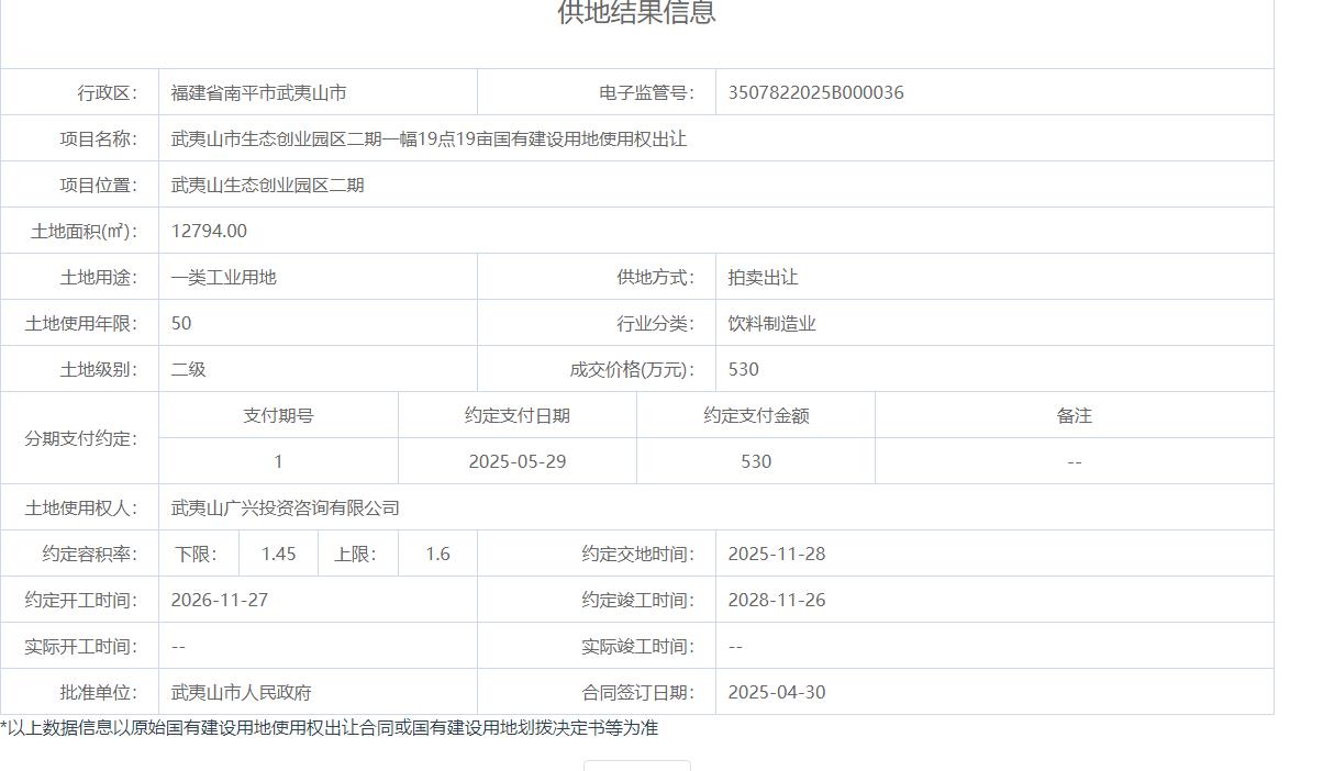 武夷山市自然资源局国有建设用地使用权招拍挂出让成交公示