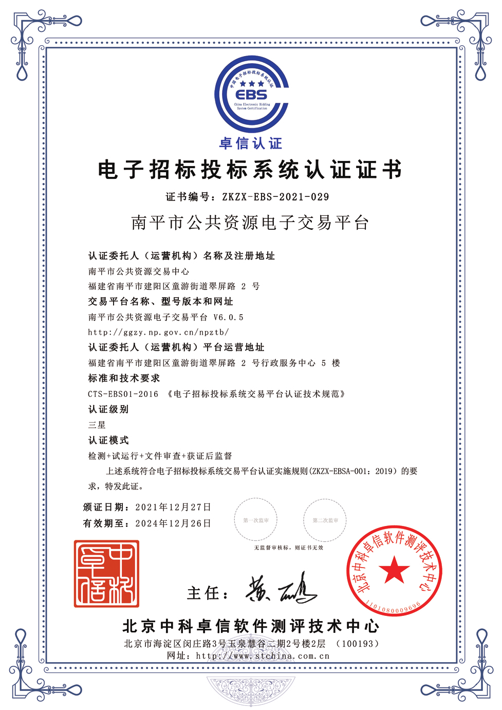 我中心电子交易系统获得《电子招标投标系统交易平台认证证书》(三星)