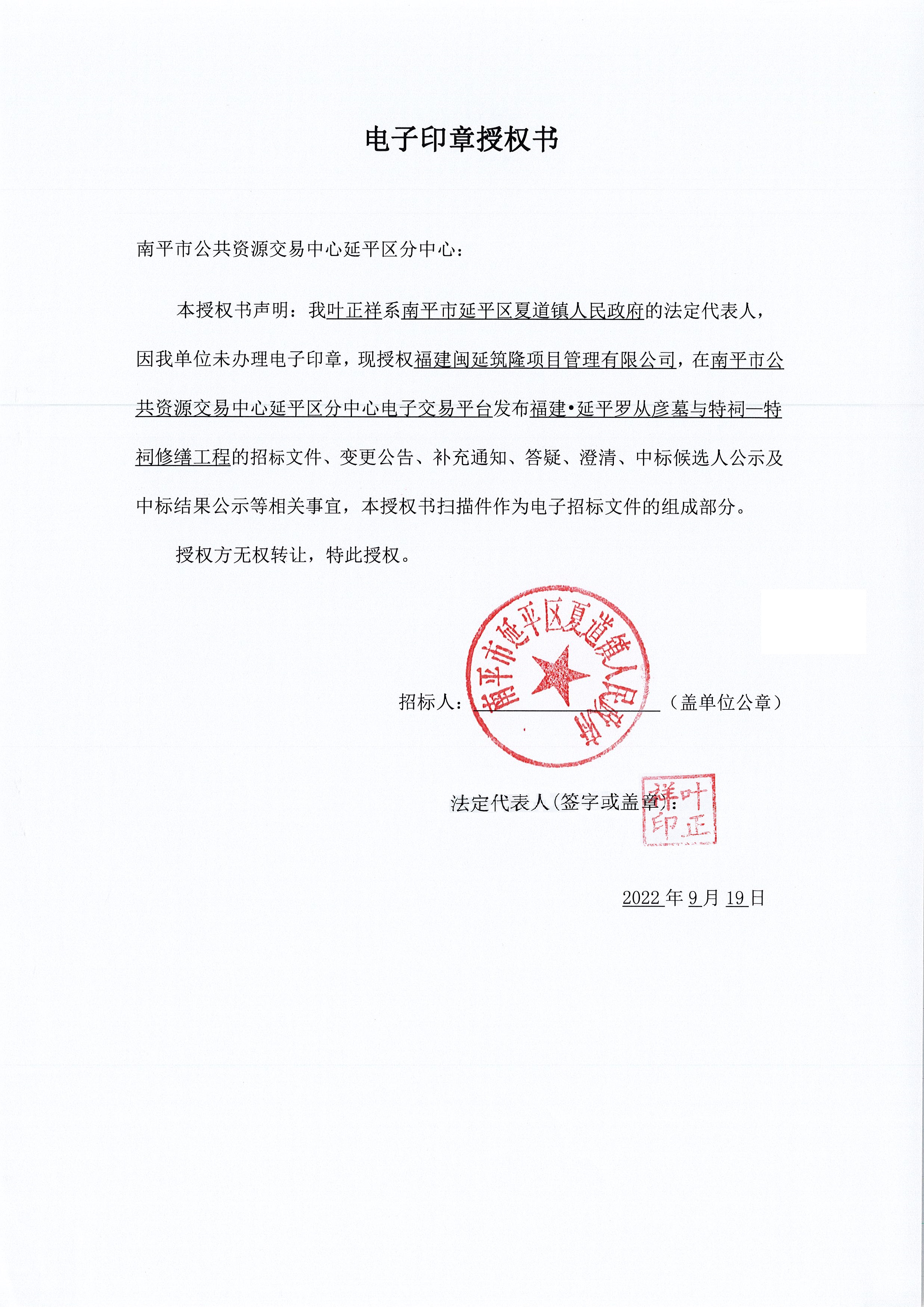 招标代理机构:福建闽延筑隆项目管理有限公司