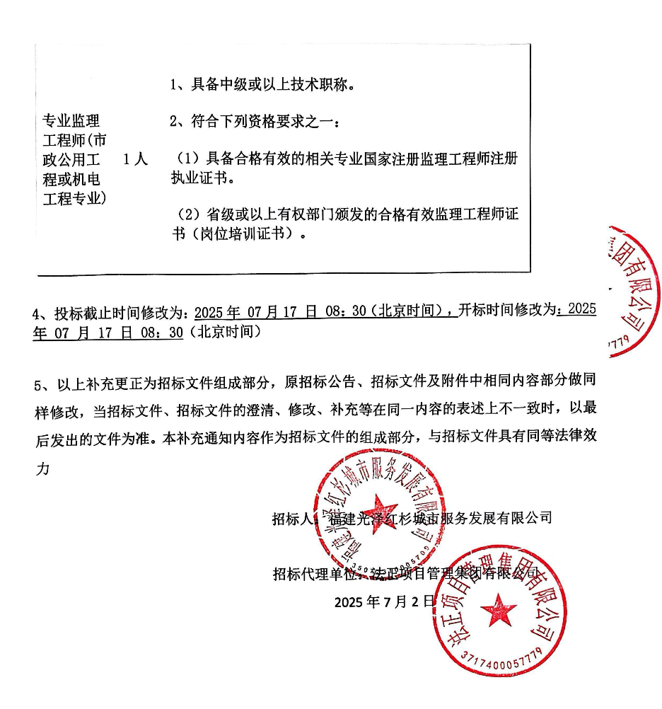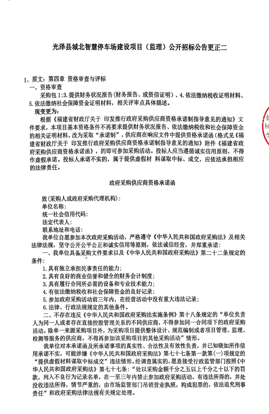 光泽县城北智慧停车场建设项目(监理)公开招标公告更正二
