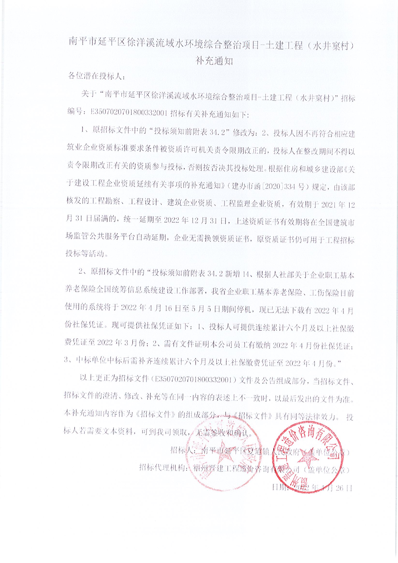 本次招标公告同时在南平市公共资源交易中心延平区分中心(http://ggzy.np.gov.cn/yp/)上发布。