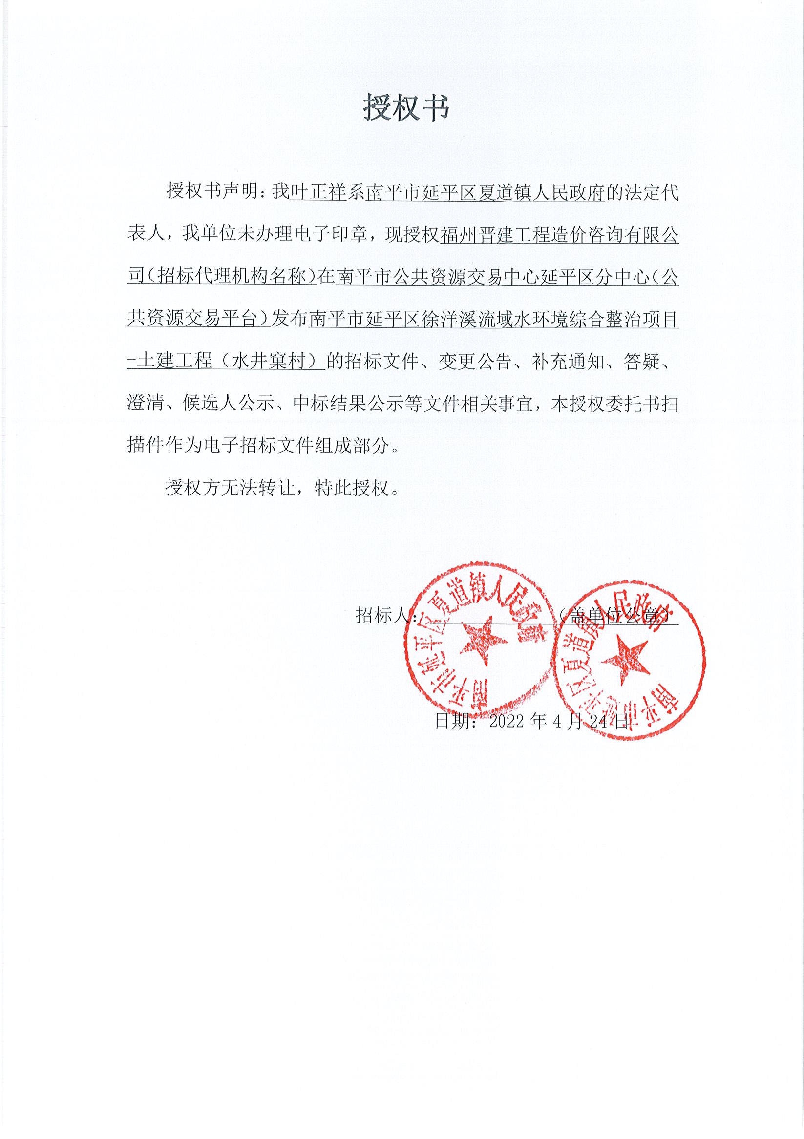 本招标项目南平市延平区徐洋溪流域水环境综合整治项目-土建工程(水井窠村)(项目名称)已由南平市延平区发展改革和科技局以延发改【2019】97号、延发改【2019】130号、延发改【2021】56号及南平市延平区夏道镇人民政府相关会议纪要批准建设,建设单位为南平市延平区夏道镇人民政府,建设资金来源多渠道筹措,招标人为南平市延平区夏道镇人民政府,委托的招标代理单位为福州晋建工程造价咨询有限公司。本项目已具备招标条件,现对该项目的施工进行公开招标。