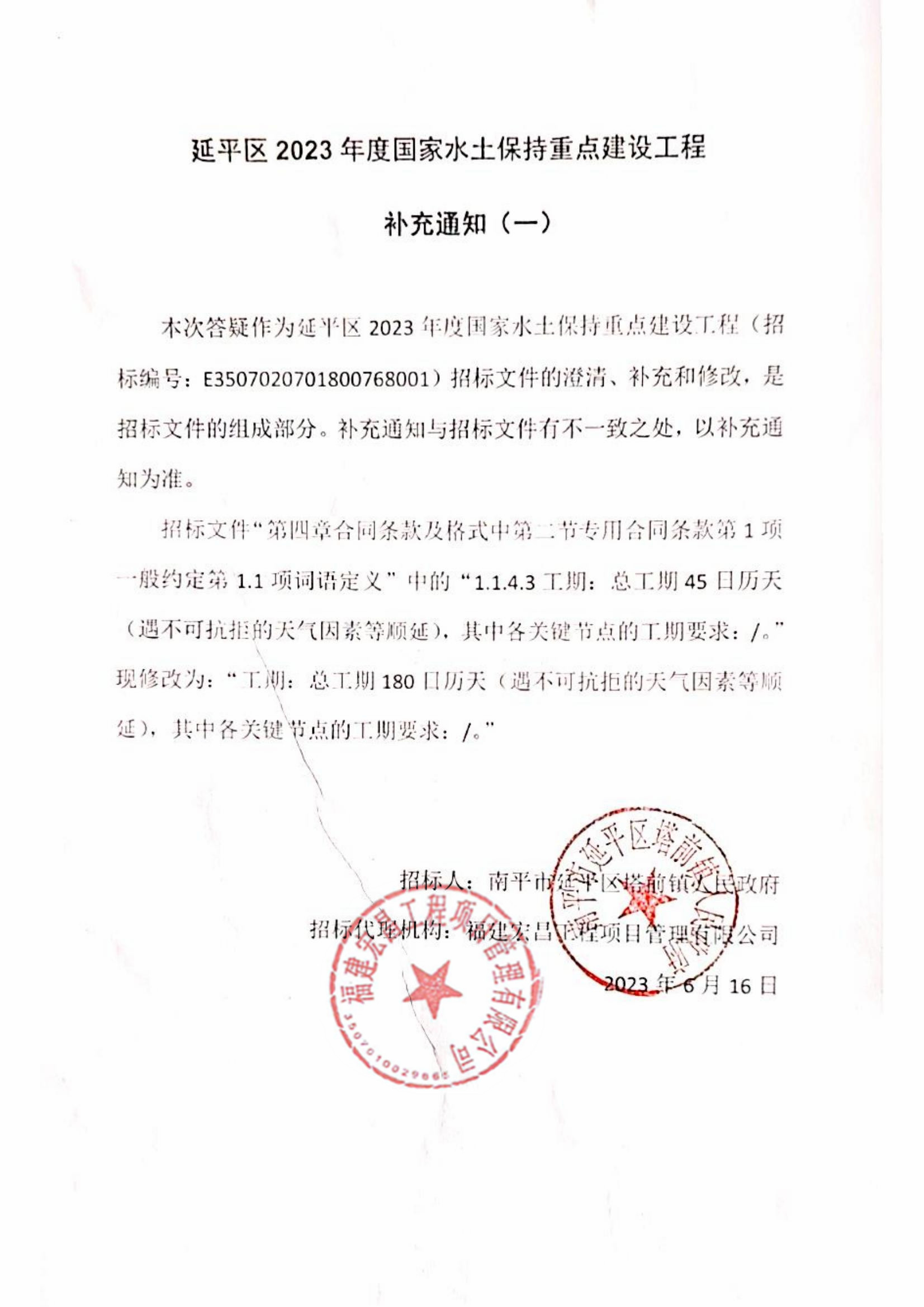 本招标项目延平区2023年度国家水土保持重点建设工程(项目名称)已由福建省水利厅以《福建省水利厅关于延平区2023 年度国家水土保持重点建设工程实施方案(初步设计)的批复》(闽水审批〔2023〕36 号)批准建设,项目业主为南平市延平区塔前镇人民政府,建设资金来自上级拨款(资金来源),出资比例为100%,招标人为南平市延平区塔前镇人民政府,招标代理单位为福建宏昌工程项目管理有限公司。项目已具备招标条件,现对延平区2023年度国家水土保持重点建设工程施工进行公开招标。