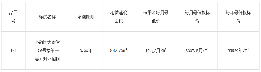 1.项目名称:小微园大食堂(6号楼第一层)对外招租